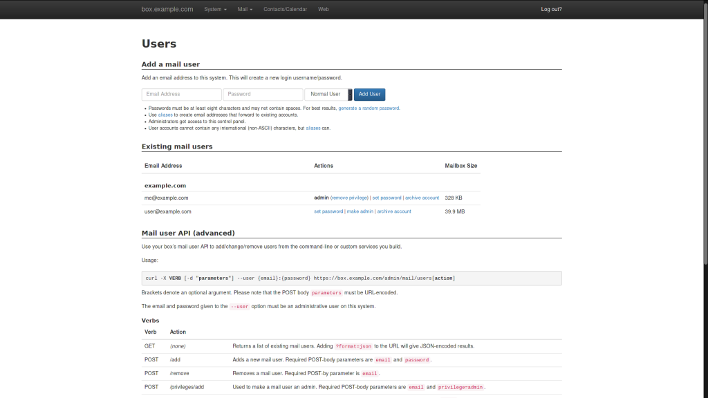 Navigate to the Mail-in-a-Box admin panel in your web browser. You’ll likely do so using: